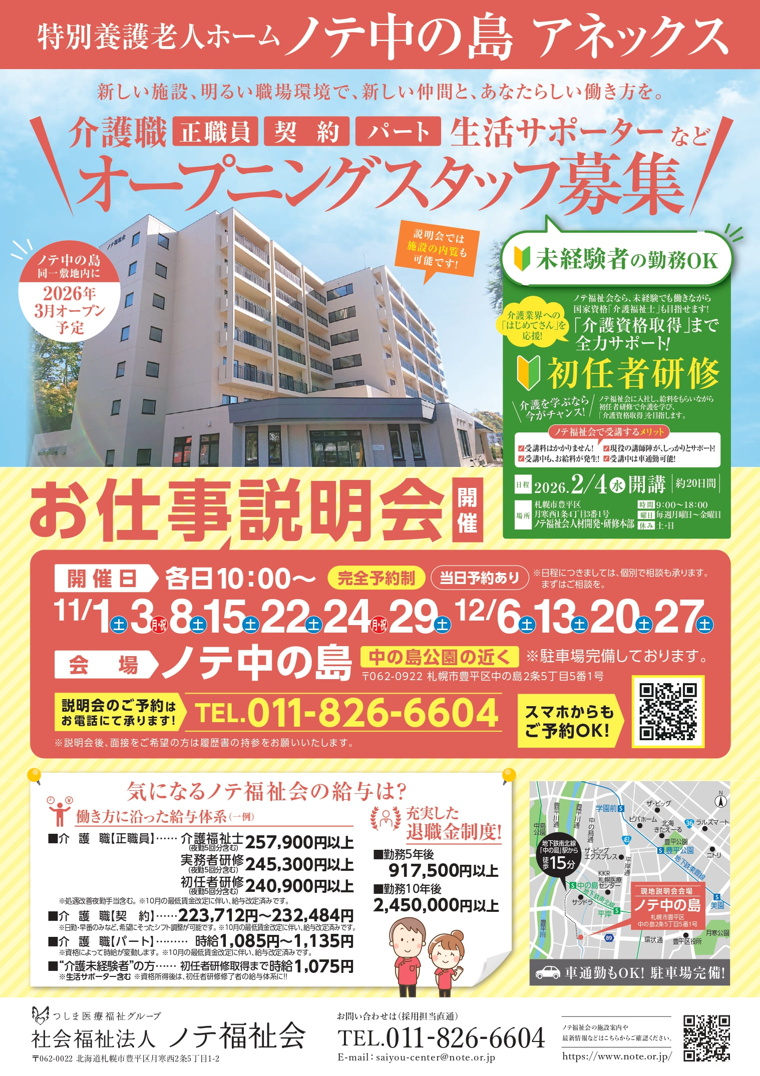 2026年3月オープン!特別養護老人ホーム中の島アネックス お仕事説明会開催中!