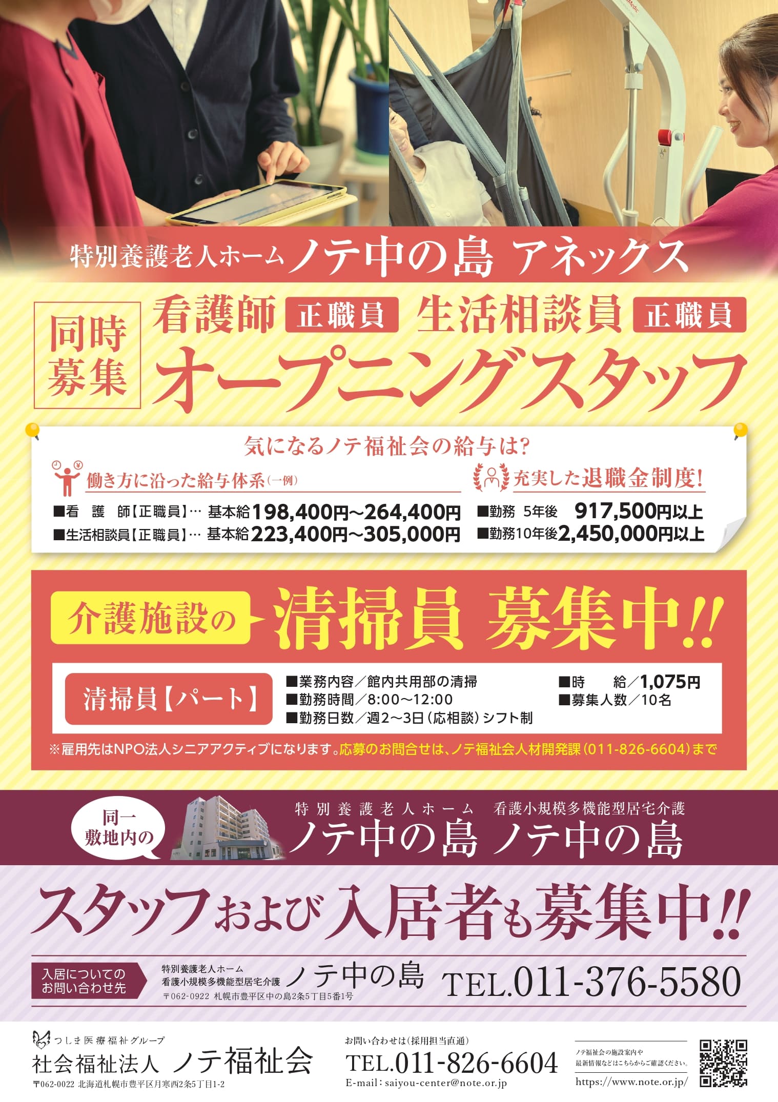 2026年3月、札幌市豊平区中の島2条5丁目に新たに「特別養護老人ホームノテ中の島アネックス」がオープンします!
