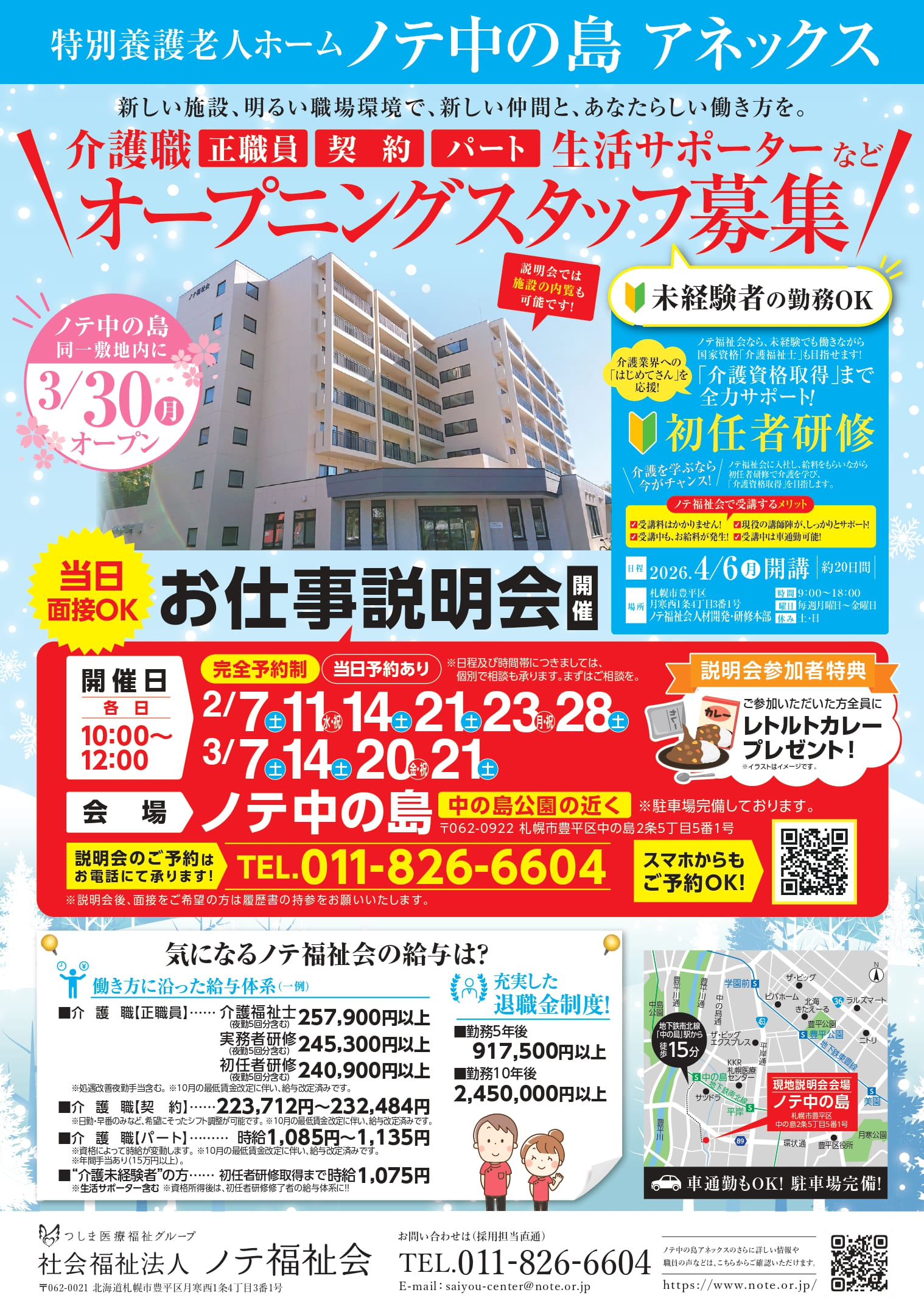 2026年3月30日、札幌市豊平区中の島2条5丁目に新たに「特別養護老人ホームノテ中の島アネックス」がオープンします!