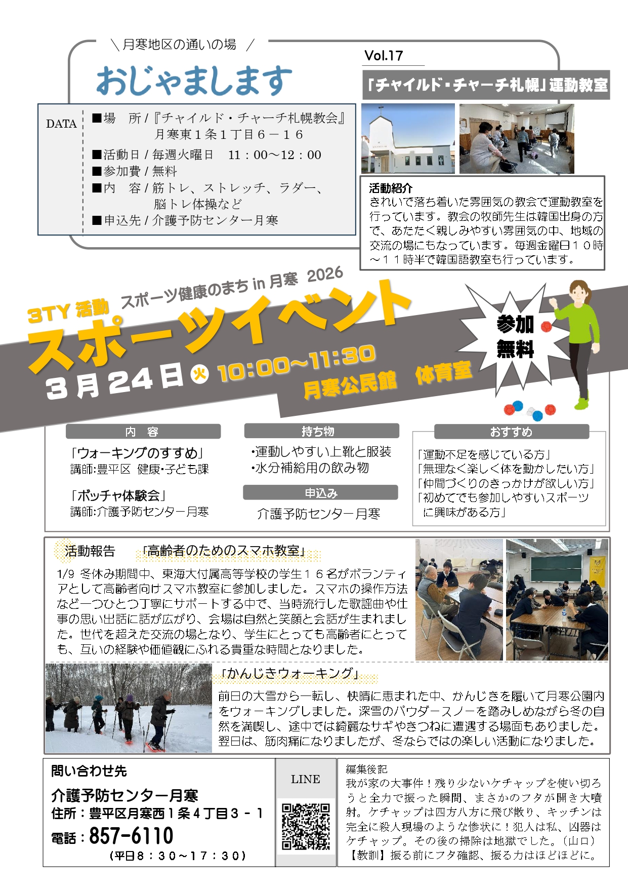 また、町連女性部と共催の「スポーツイベント」ではボッチャ体験会を行います。他にも、今年最後の「かんじきウォーキング」など、身体を動かすイベントが盛りだくさんです。
